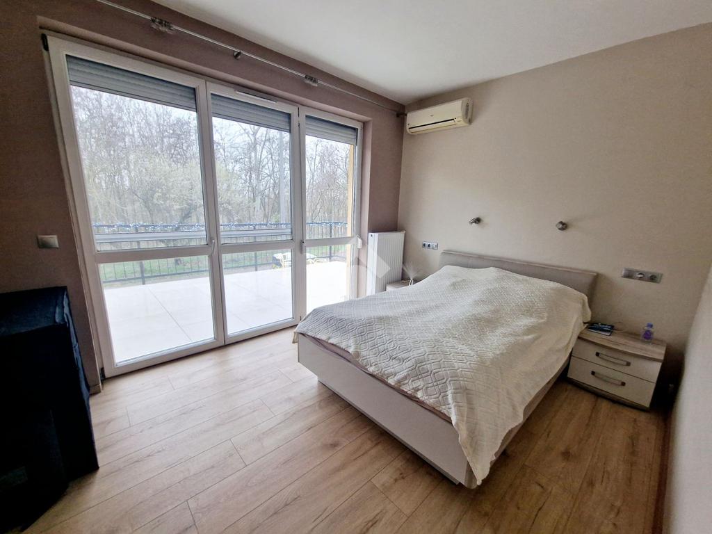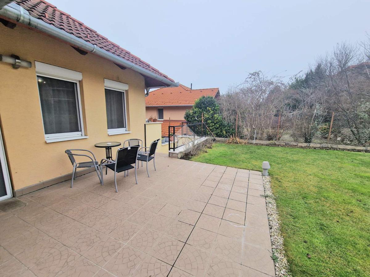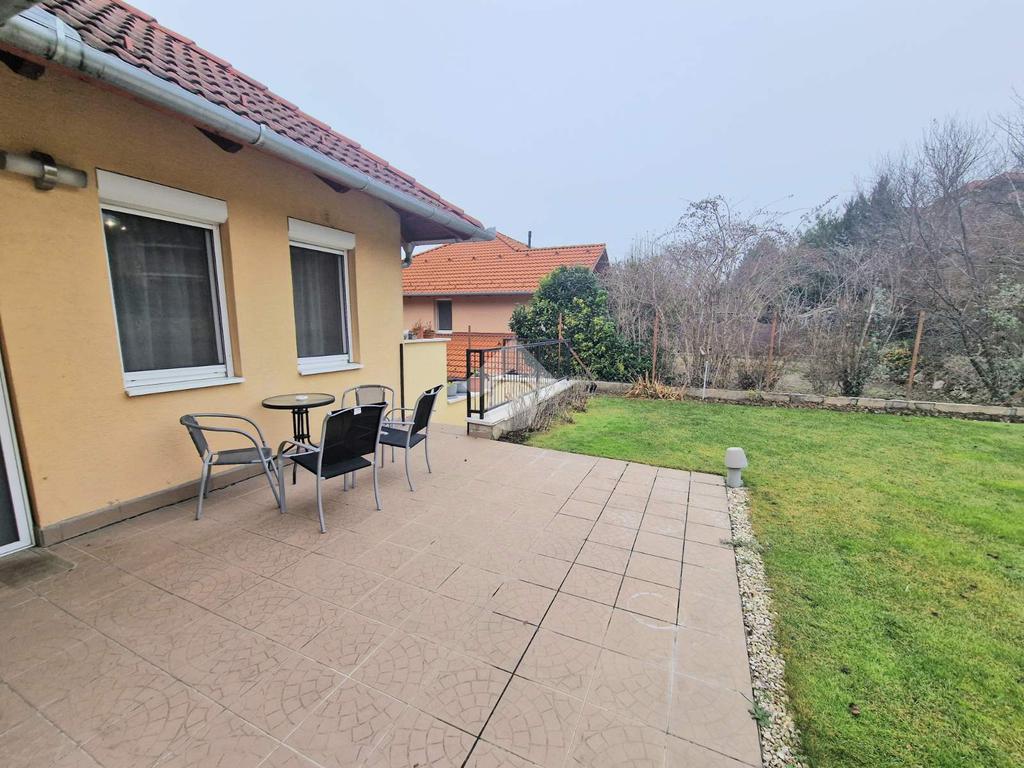A lépcsőzetes telekkialakítás praktikus, esztétikus és öntözőrendszerrel ellátott, amely lehetővé teszi a kert különböző funkcionális zónáinak kihasználását. A kikapcsolódást 14 m²-es terasz és 19 m²-es erkély szolgálja.