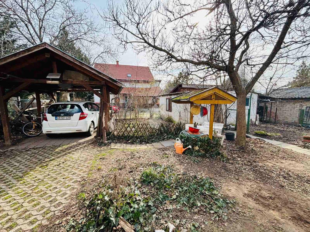 A 443 nm-es telken egy fedett kocsibeálló található, emellett több autó számára is biztosított a parkolás a kertben. A méret ideális: élhető, mégis könnyen karbantartható.